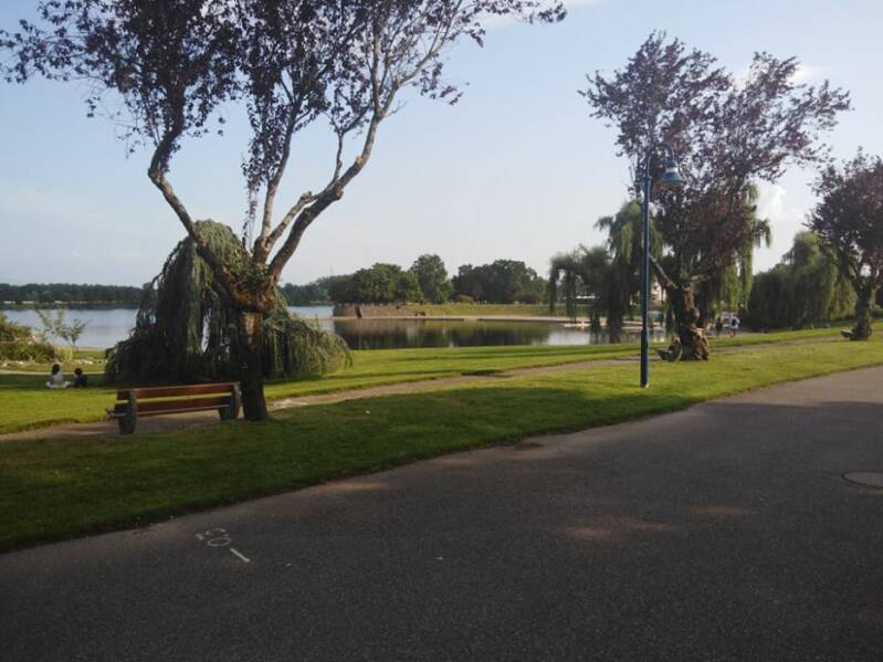 Une promenade à pied, vélo, etc., sans voiture, ceinture ce lac touristique.