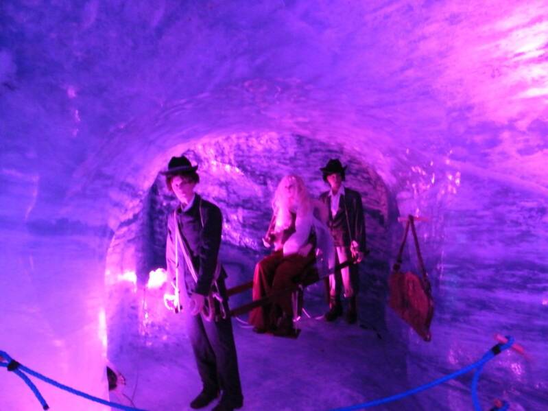 Retaillée chaque année depuis plus de 50 ans, vous pénétrerez au coeur même du glacier, à l'intérieur d'un chalet entièrement sculpté dans la glace où, comme figés dans le temps, des mannequins en costume d'époque témoignent du mode de vie montagnard d'antan.