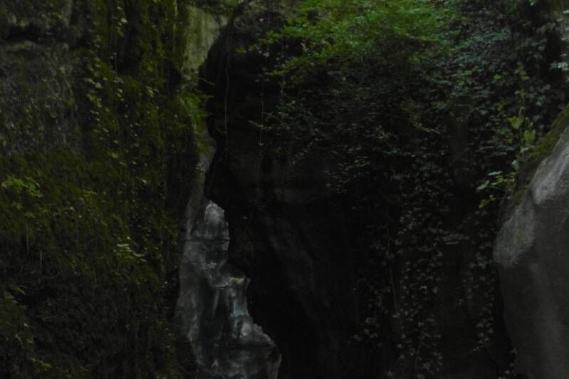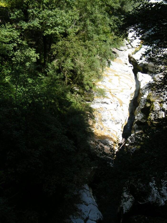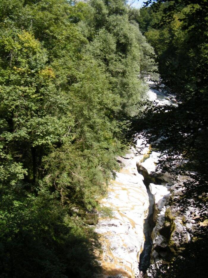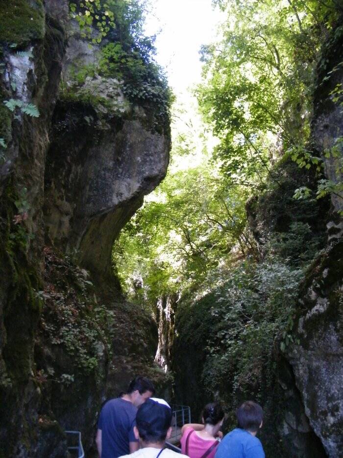 On pénètre à l'intérieur d'un gigantesque défilé au fond duquel coule le Fier et où l'on peut admirer des amas de blocs de rochers aux formes les plus variées.