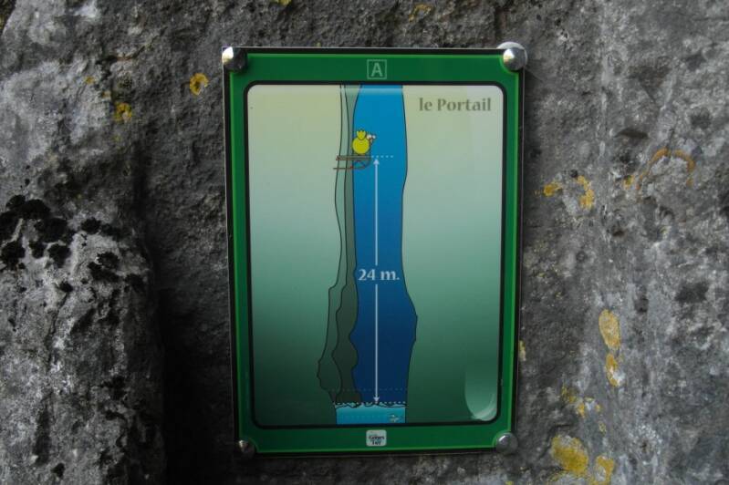 A mi-parcours, contre la paroi rocheuse, une échelle de mesures indique les hauteurs atteintes par les eaux lors des grandes crues.
