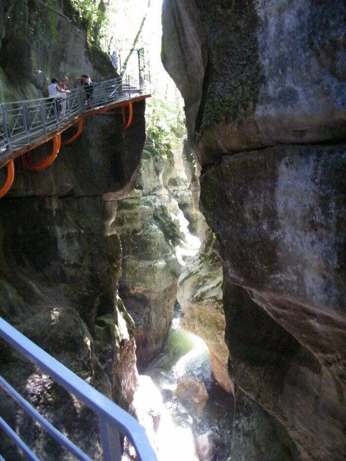 Depuis 1869, les gorges sont accessibles au public par une passerelle longue de 252m, suspendue à 25m au-dessus de la rivière.