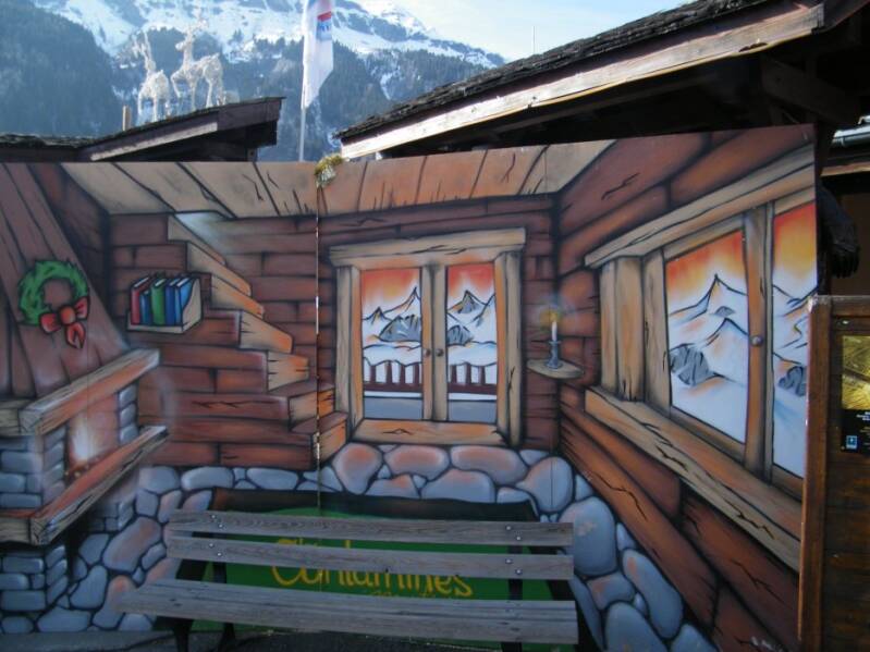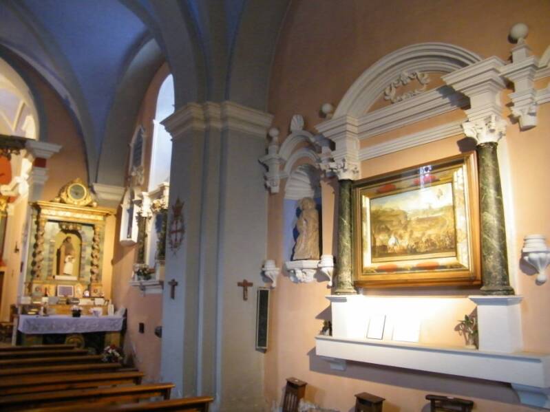 L'autel latéral de droite est dédié à saint Joseph, qui est entouré de saint Pierre et de saint Barthélémy. L'autel de gauche est dédié à la sainte Vierge qui porte l'Enfant-Jésus. On remarque sainte Agathe, martyre portant ses seins sur un plateau, et sainte Marguerite. La voûte est décorée de fresques avec des médaillons figurant les quatre Évangélistes, et au-dessus de la tribune saint Guérin (abbé d'Aups en Chablais et saint François de Sales.