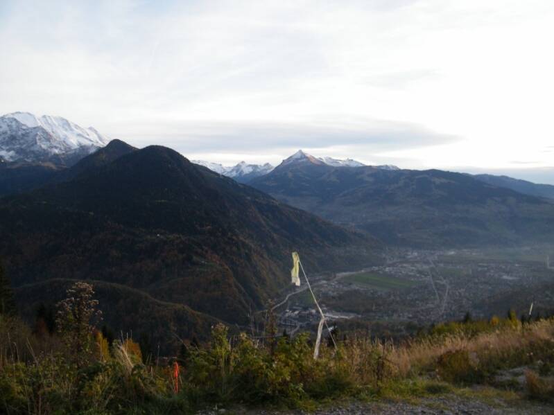 A 1350 m d'altitude la vue panoramique sur la chaîne du Mont-Blanc ainsi que sur toute la vallée y est exceptionnelle.