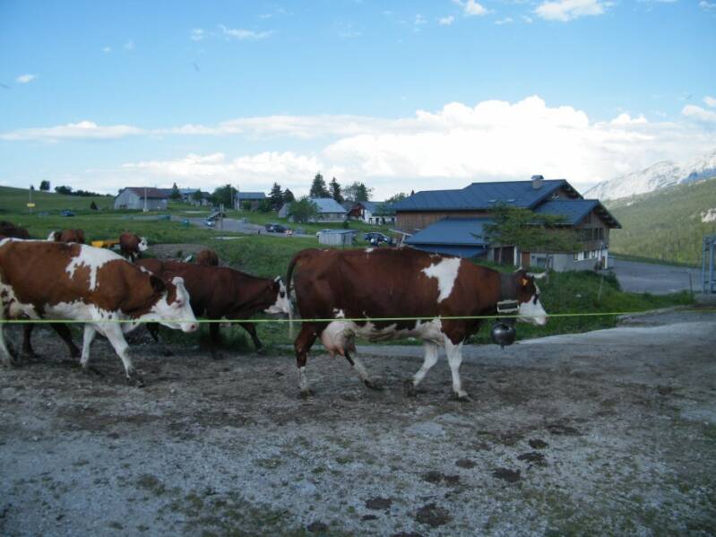 Après l'hiver passé au village, les agriculteurs et leurs troupeaux « en-montagnes », sur le Plateau de Solaison situé à 1500 m d'altitude. Le retour des vaches sur les alpages redonne au plateau son authenticité et les clarines sonnent le rythme de l'été.