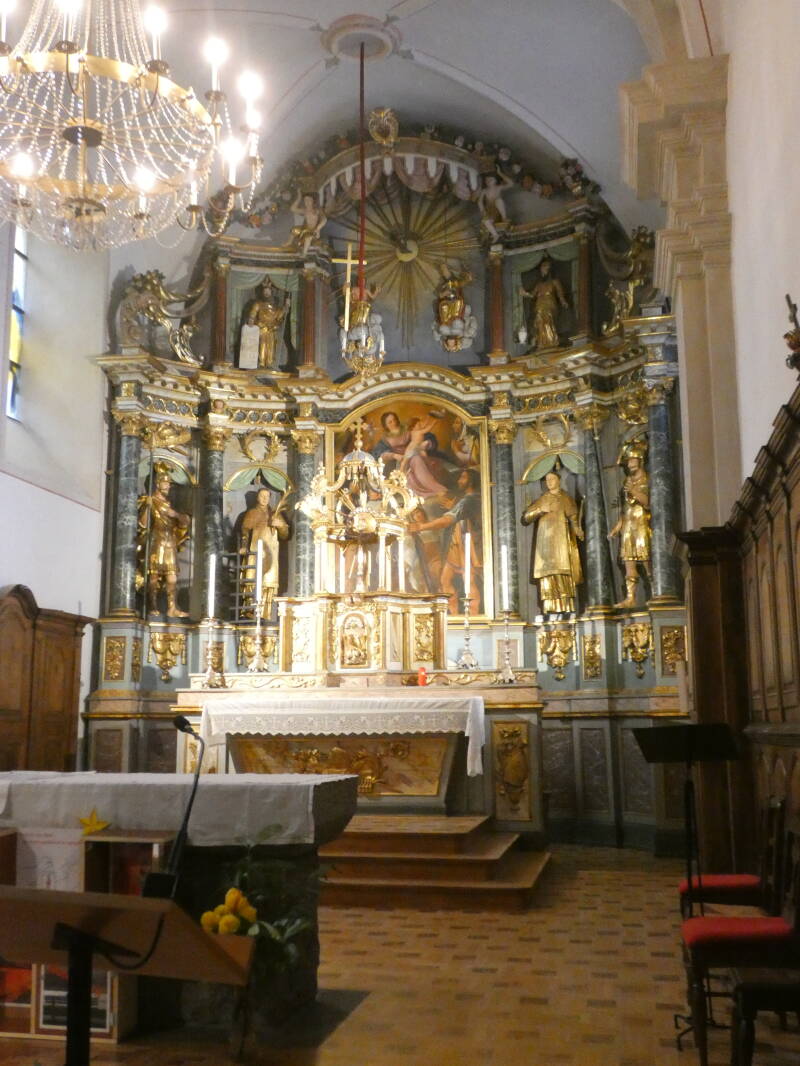 L'église actuelle, de style baroque, est édifiée sur l'emplacement d'une église primitive du XIIème siècle. L'ensemble sera restauré par de gros travaux entre 1954 et 1959 avec l'adjonction de la sacristie et ses dépendances ce qui nécessitera l'obturation d'une baie du chœur.
