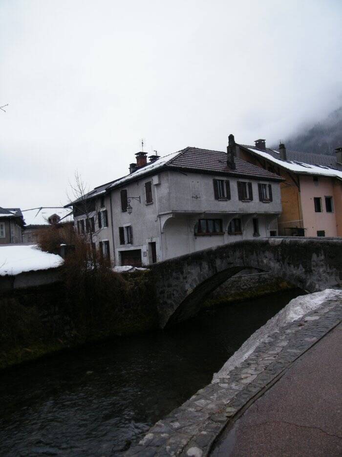 Le Vieux Pont date de 1734 ; il fut construit par 3 entrepreneurs de Samoëns: Jean Gaythier, Joseph Simon et Riondel. Les tailleurs de pierre de Samoëns étaient de grands bâtisseurs et l'on doit notamment à leurs burins l'Hôtel de Ville d'Annecy ou encore le Sénat de Savoie à Chambéry.