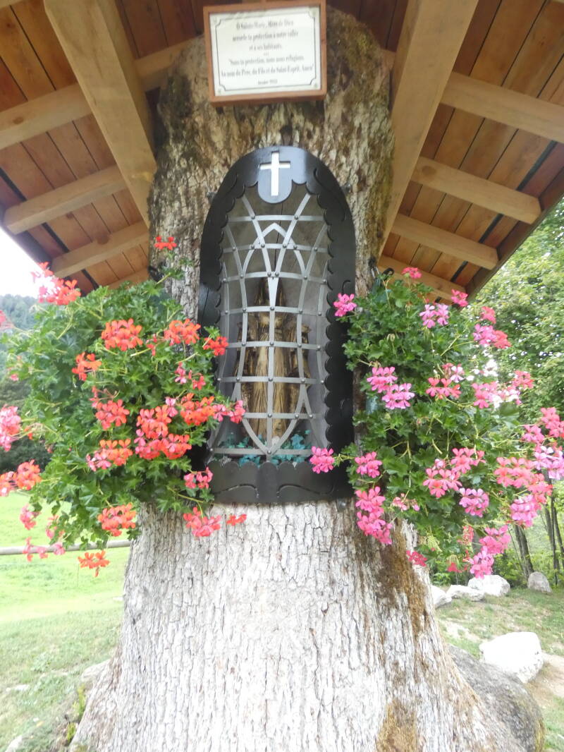 En 1855, elle est réduite en cendres. Un vent violent souffle au moment où brûle le bâtiment de l’Abbaye et des tisons enflammés lui boutent le feu à son tour[1]. Rien ne subsiste de nouveau, hors les murs. M Chappaz entreprend une collecte dans toute la paroisse et fait faire les réparations dans le courant de l’année 1856 : voûte en plâtre, toiture, clocheton, tribune, plancher, autel. Le 11 juillet 1857, c’est la bénédiction de la chapelle rénovée.