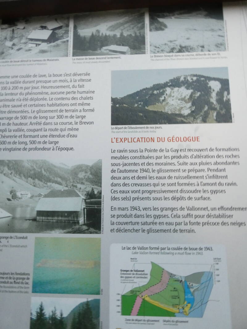La formation du barrage a aussi entrainé une modification du tracé du Brevon. Les relevés effectués au XIXe siècle montrent que la rivière s'écoulait au pied du rocher d'Ombre avant la catastrophe. De même, la formation du lac a favorisé le stockage sédimentaire dans le lac et entrainé une érosion régressive du Brevon en aval, et l’installation d’un delta à l’embouchure de la Diomaz et du Brevon en amont[3]. L'érosion en aval entraine un important lessivage de la fraction argileuse des dépôts de la coulée qui s'est accumulée dans la retenue du barrage hydro-électrique de Bellevaux. La profondeur théorique est évaluée à 20-25 m en avril 1943. Le barrage fait 200 m de large pour une longueur de 900 m (coulée du Brevon). D'autres glissements ont été répertoriés dans le secteur, comme celui d'avril 1970 où une petite coulée de boue partie du même secteur a barré la route au niveau de Court Champ.
