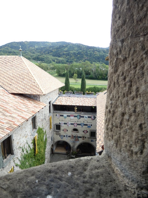 Le corps de logis principal comprend, au rez-de-chaussée, la salle des gardes et la salle des écussons ; y sont reproduits les blasons (appelés parfois « marques ») de toutes les familles savoyardes. Au premier étage on trouve les salles des dames et du Cruet, et au second la salle des messieurs et la salle de chasse.