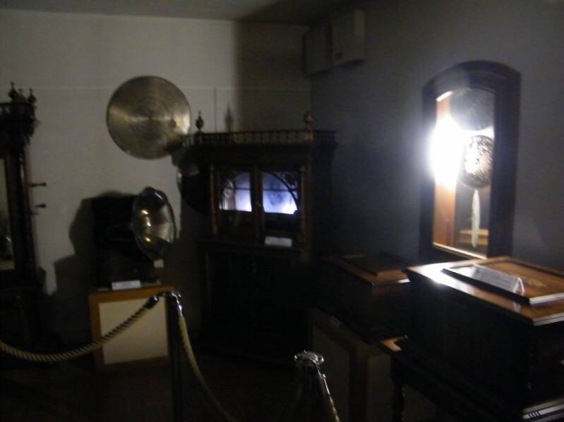 La musique mécanique a permis l'éclosion d'un vieux rêve de l'homme : la reproduction de la voix humaine avec la réalisation de la Machine Parlante. En effet, les instruments merveilleux découverts dans les 2 premières salles préfiguraient l'invention des fameux phonographes et gramophones qui révolutionnèrent la diffusion de la musique début 20ème siècle.