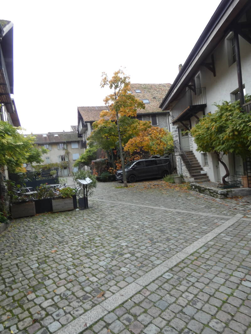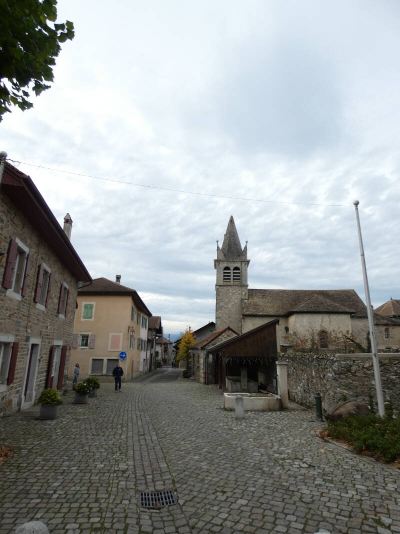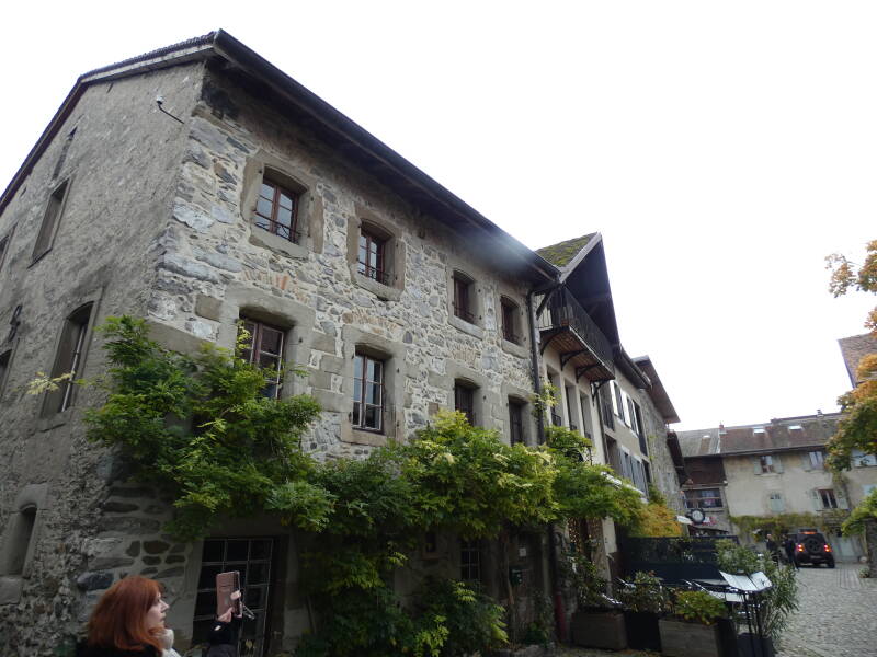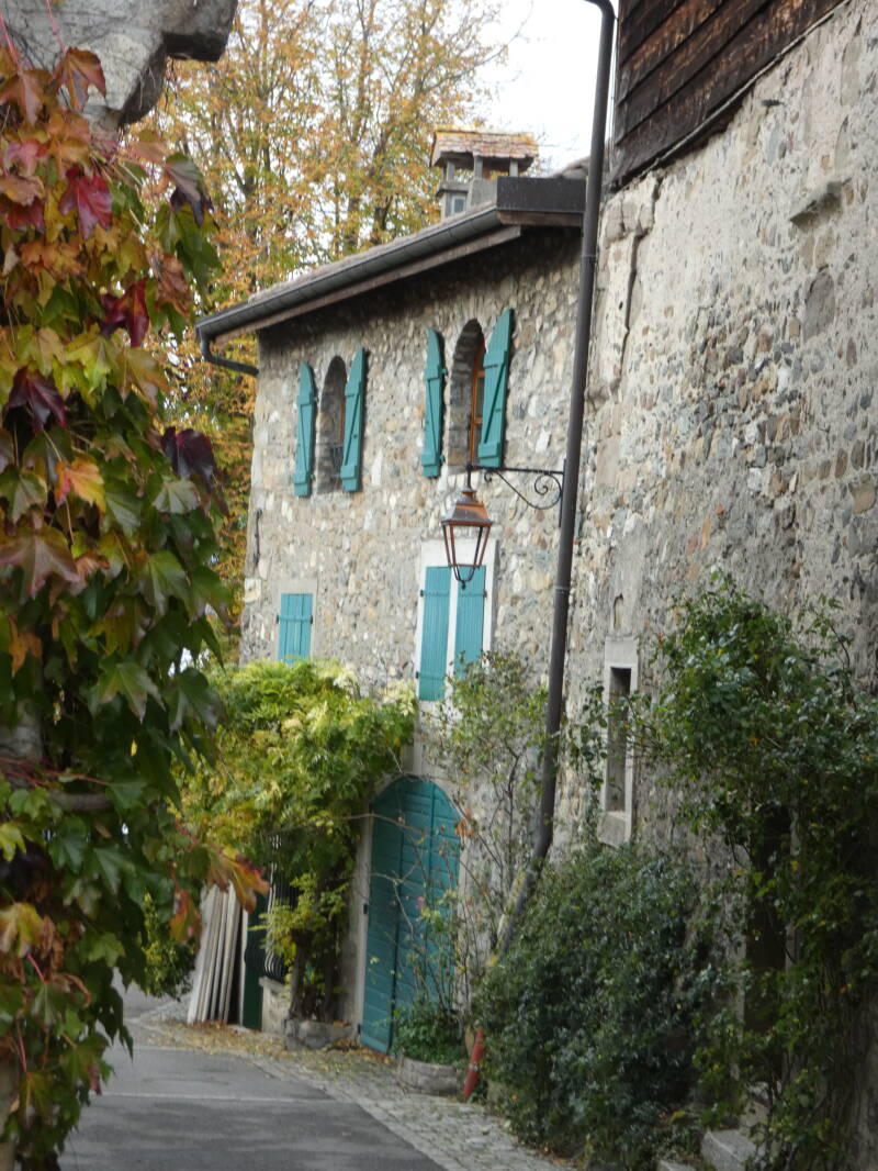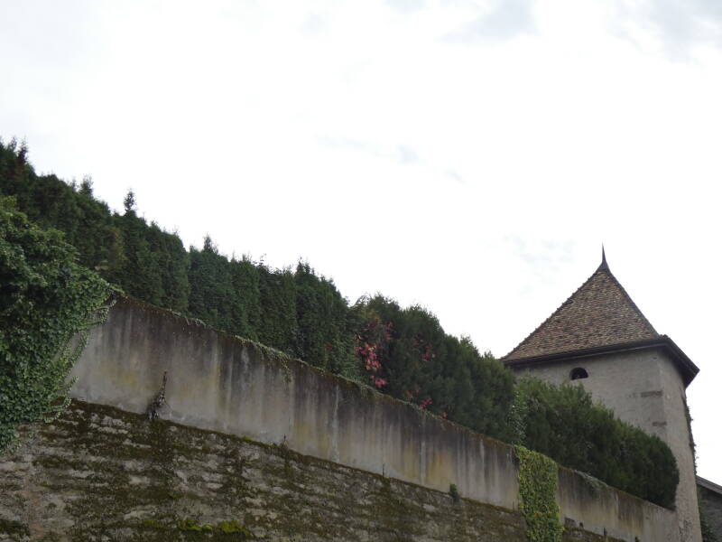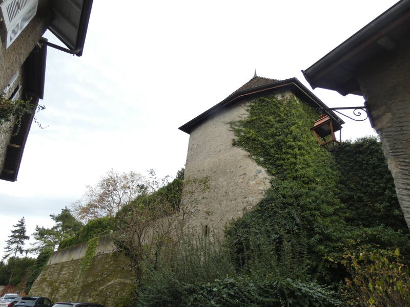 Comme à Yvoire, deux portes donnaient accès à l'intérieur, une au midi adossée à la tour, l'autre au couchant vers le lac (celle-ci n'existe plus mais une maison appelée "La pouterla" – la poterne – nous rappelle son emplacement probable). Entre ces 2 portes, les maisons du village sont élevées sur des murs très épais qui semblent être les derniers vestiges des remparts du château."