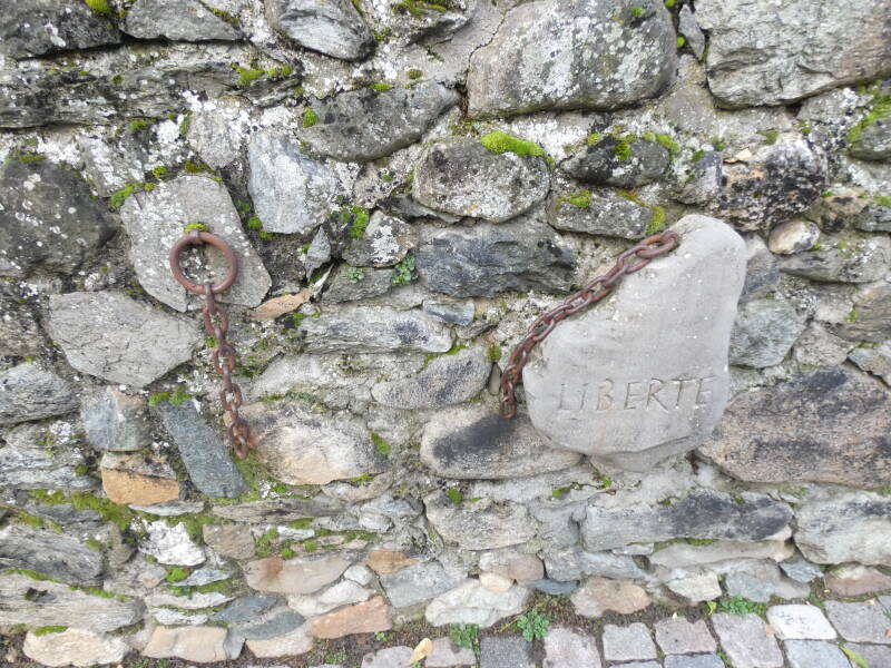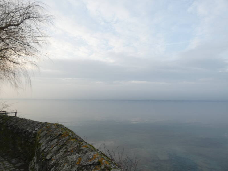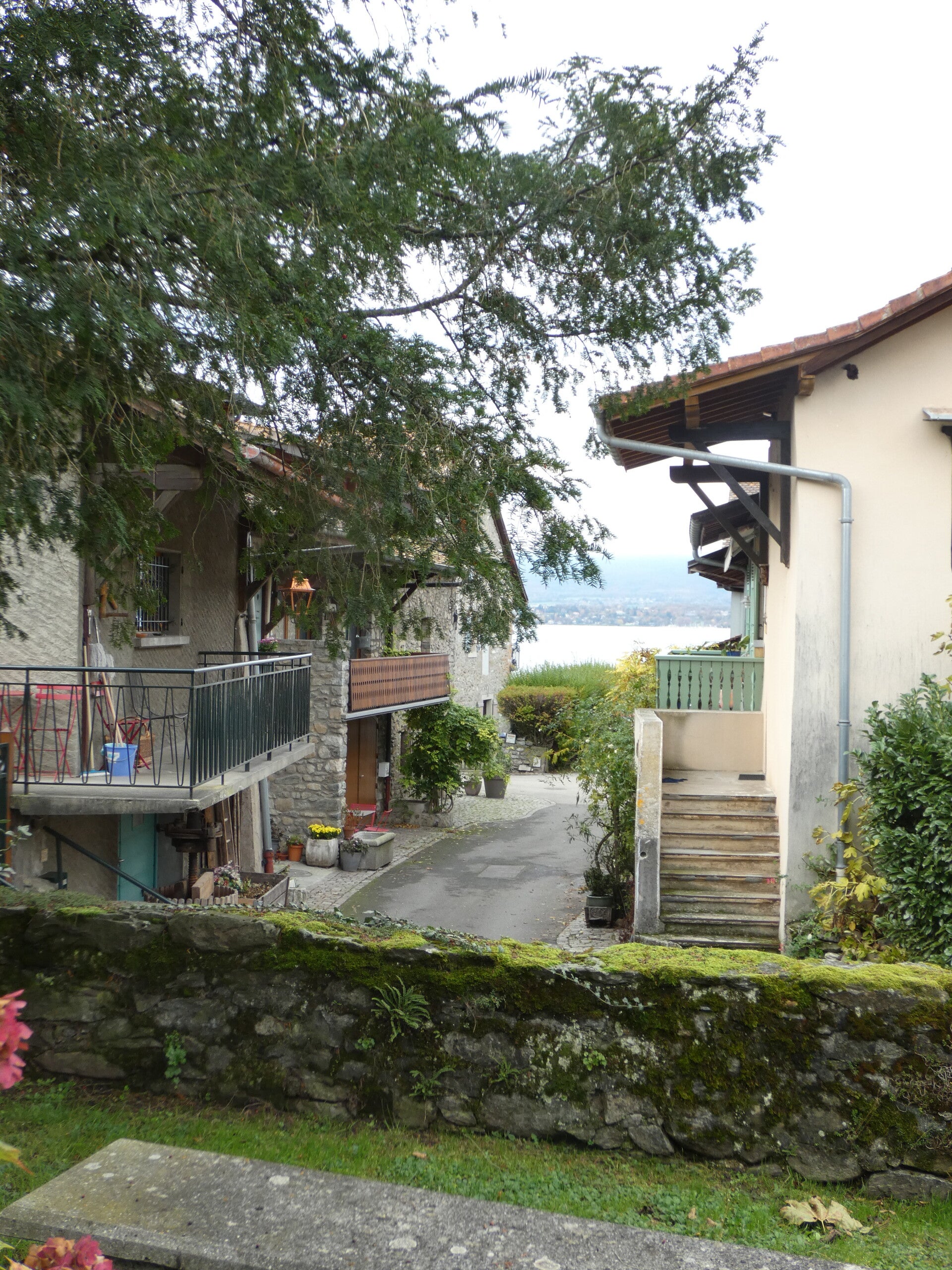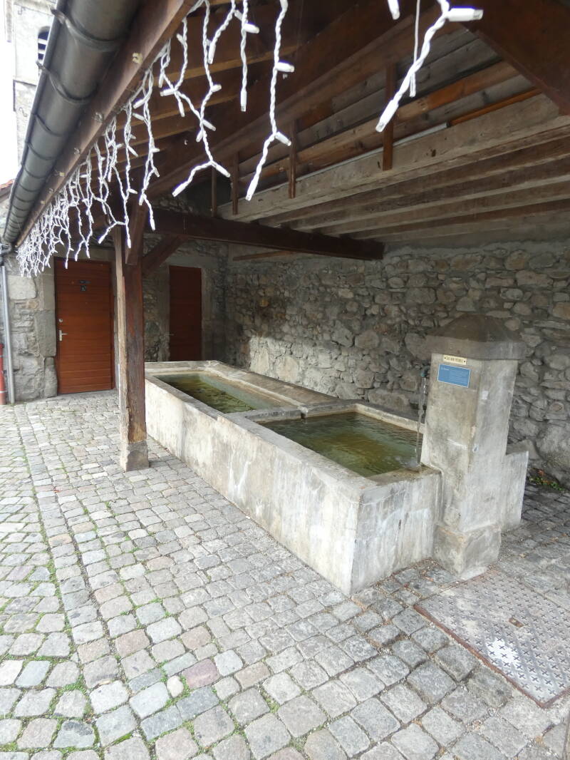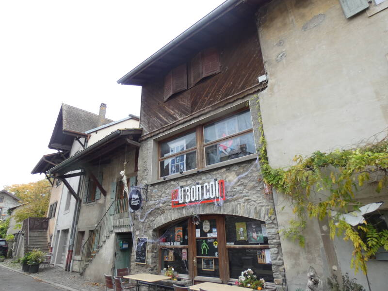 Comme à Yvoire, deux portes donnaient accès à l'intérieur, une au midi adossée à la tour, l'autre au couchant vers le lac (celle-ci n'existe plus mais une maison appelée "La pouterla" – la poterne – nous rappelle son emplacement probable). Entre ces 2 portes, les maisons du village sont élevées sur des murs très épais qui semblent être les derniers vestiges des remparts du château."