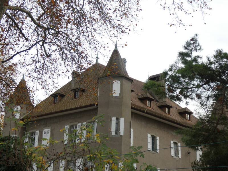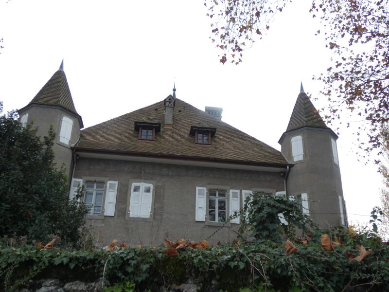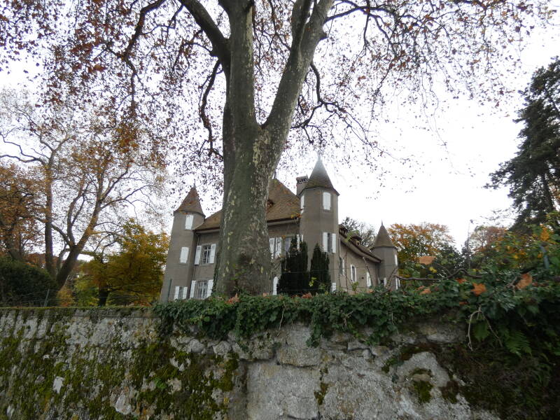 En étudiant la mappe sarde de 1730, on peut visualiser l'emprise et l'importance de la propriété du château et des bâtiments annexes. Au XIXe siècle, la construction ressemble à une grosse maison savoyarde de forme cubique, qui va être ensuite agrandie et modifiée. La propriété appartient à Marie-Véra de Leusse de Syon, qui, avec son mari Bruno, ambassadeur de France, va entreprendre la transformation du château du XIXe. Pour se faire, ils font appel à l'architecte de renom international, Maurice Novarina ; il va leur proposer de couper la maison transversalement et de reconstruire la partie haute sous toiture, ainsi que les tours d'angles. Telle est encore sa conception aujourd’hui !