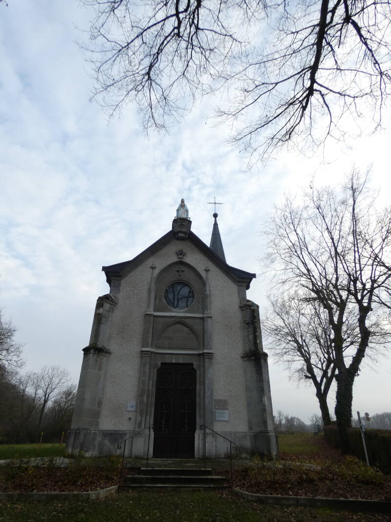 L’abbé Favre élève un sanctuaire dédié à la Mère de Dieu sous le nom de Notre Dame du Lac. Il recherche un terrain propice à la construction de cet édifice de culte, il propose à la commune de lui vendre un terrain situé à la Luche du Crot, entre le chemin du Cré et celui de Frize. En 1856, le conseil municipal donne son accord pour la construction de la chapelle. Mais c'est seulement le 1er août 1862 que le conseil municipal donnera son accord pour la vente du terrain pour la modique somme de 50 francs. Dans la délibération du conseil, on découvre une close essentielle du contrat « si la Chapelle construite venait à être démolie ou cesser sa destination de service religieux, le fonds reviendrait de plein droit et sans indemnité à la Commune ».