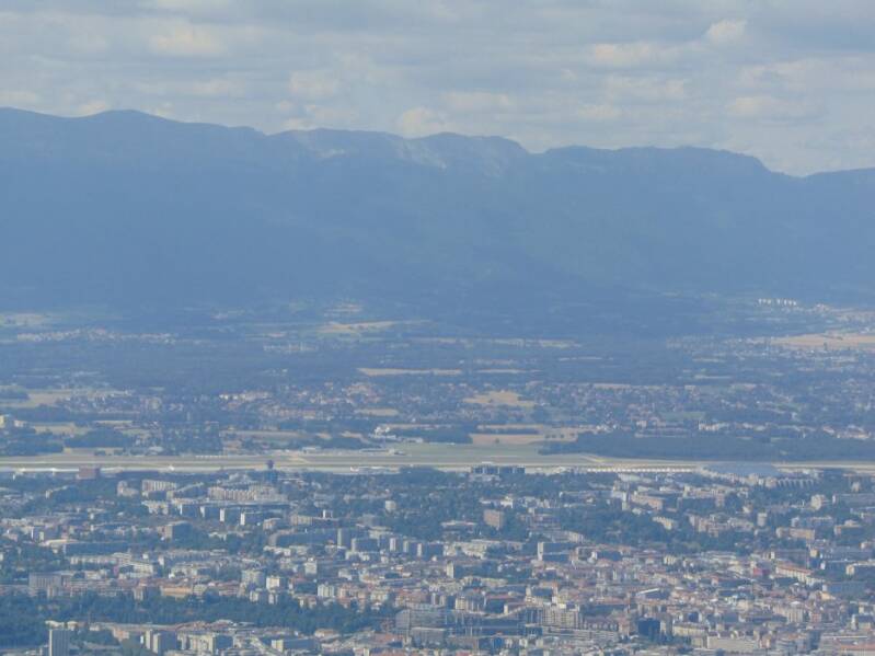 En contrebas du versant nord du Salève, se trouve l'agglomération suisse de Genève. Il est au centre d'un vaste territoire où vivent plus de sept cent mille personnes. Il est entouré par les autoroutes françaises A40, A41 et A410.