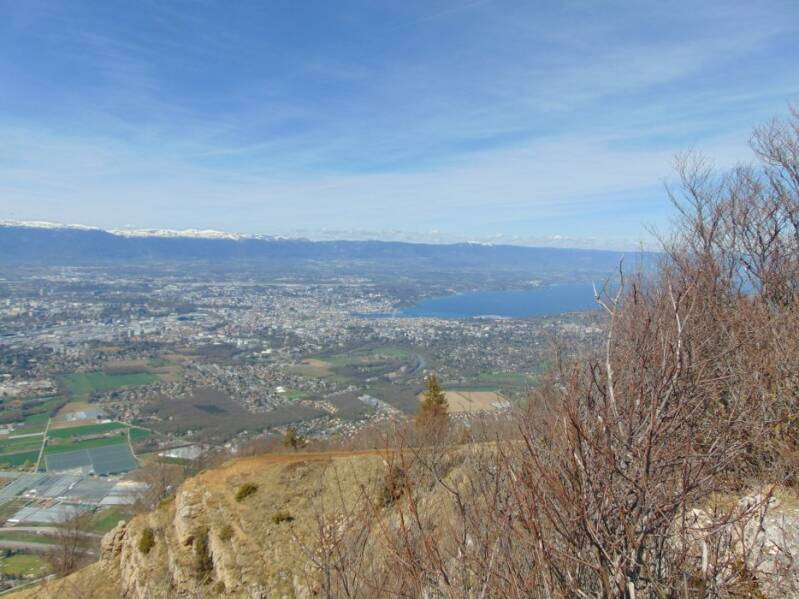 Le Salève offre un magnifique panorama sur l'agglomération genevoise, le lac Léman, le sud du massif du Jura, les Préalpes, le lac d'Annecy et le mont Blanc.