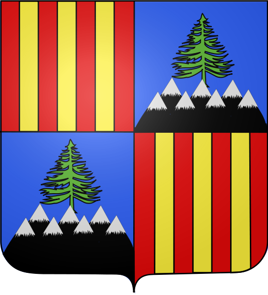 Les armes de Samoëns se blasonnent ainsi : « Écartelé : au premier et au quatrième de gueules aux trois pals d'or, au deuxième et au troisième d'azur à un sapin de sinople soutenu d'une chaîne de sept monts de sable aux sommets enneigés d'argent mouvant de la pointe ».