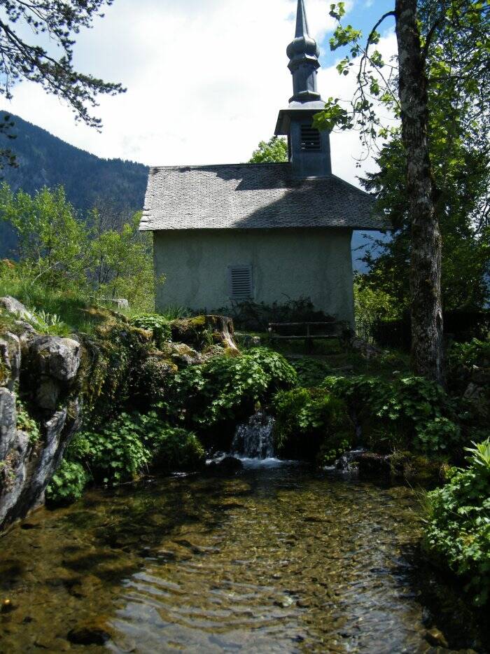 Le jardin, parcouru par un sentier en zigzag, arrosé par un ruisseau de montagne, offre des points de vue remarquables sur le bourg, la vallée du Giffre et les hauts sommets qui l'entourent. Une chapelle attend le visiteur au sommet d'où l'on peut contempler le splendide panorama du village de Samoëns.