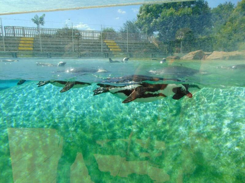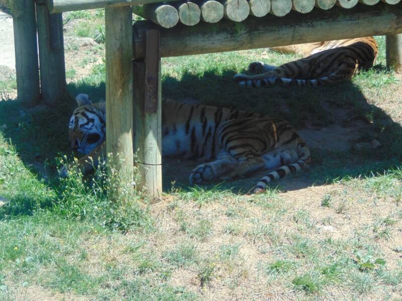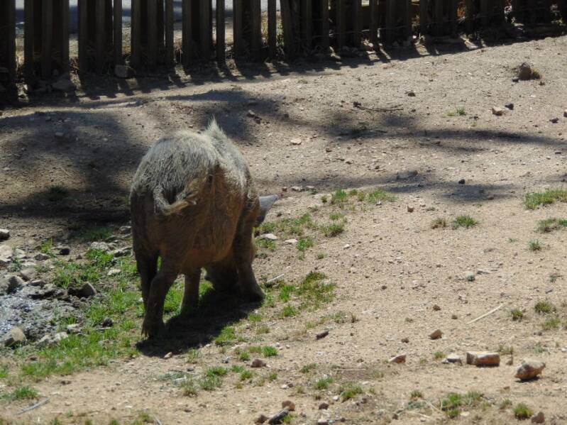 Le parc à pied constitue environ la moitié du parc. De nombreuses espèces sont présentes dans des enclos de plusieurs hectares. Le parc à pied contient également un vivarium. Le plus impressionnant de cette partie du parc est l'espace dédié aux fauves où une passerelle surplombes les carnivores tandis qu'un tunnel de verre permet un face à face avec les tigres et les lions.