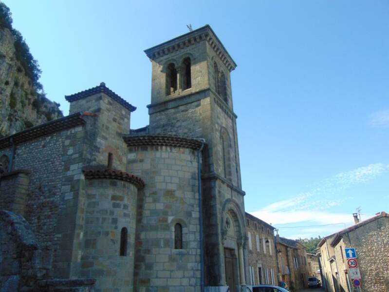 L'église, édifiée au XIIe s. sur un sanctuaire carolingien (authentifié par la découverte en 1975 d'une épitaphe) qui a renfermé le tombeau de saint Venance, conserve de très belles sculptures carolingiennes, restes d'un chancel à baldaquin de la première moitié du IXe siècle. L'édifice, de plan rectangulaire, possédait une abside semi-circulaire flanquée de deux absidioles. Au XIXe, on changea l'orientation de l'église en perçant l'abside pour élever un clocher-porche, et on construisit une abside dans l'étroit espace compris entre l'entrée primitive et la falaise surplombant le village. Un monastère de Bénédictines occupait cet emplacement : il fut détruit par les Protestants en 1627 et les religieuses, emportant les reliques de saint Venance, se réfugièrent à Valence pour y créer l'abbaye Notre-Dame de Soyons.