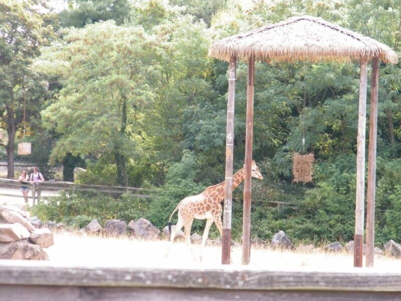 Le sens le plus développé chez la girafe est la vue. Elle est capable de voir un homme à 2 km. Certains pensent qu'elle distingue les couleurs : le rouge, l'orange, le jaune, le vert et le violet. La girafe a une marche lente est souple. Elle soulève, à chaque pas, les deux pattes d'un même côté, on dit qu'elle va à l'amble. Elle peut atteindre, au galop, 56 km/h. La Girafe possède un appareil bucal unique dans le monde animal. Sa langue noire et gluante, longue de 50 cm, se glisse entre les épines acérées des acacias pour atteindre les pousses les plus nourissantes. La girafe passe plus de 12 heures par jour à brouter. Les girafes se reproduisent toute l'année. La femelle est en chaleur une journée tous les quinze jours . Pour savoir si la femelle est en chaleur, le mâle goûte son urine, c'est le flehmen. La femelle met au monde son premier grirafon à l'âge de 5 ans. La mise bas dure environ 1 à 2 heures. La mère restant debout, le girafon fait une chute brutale de près de 2 m