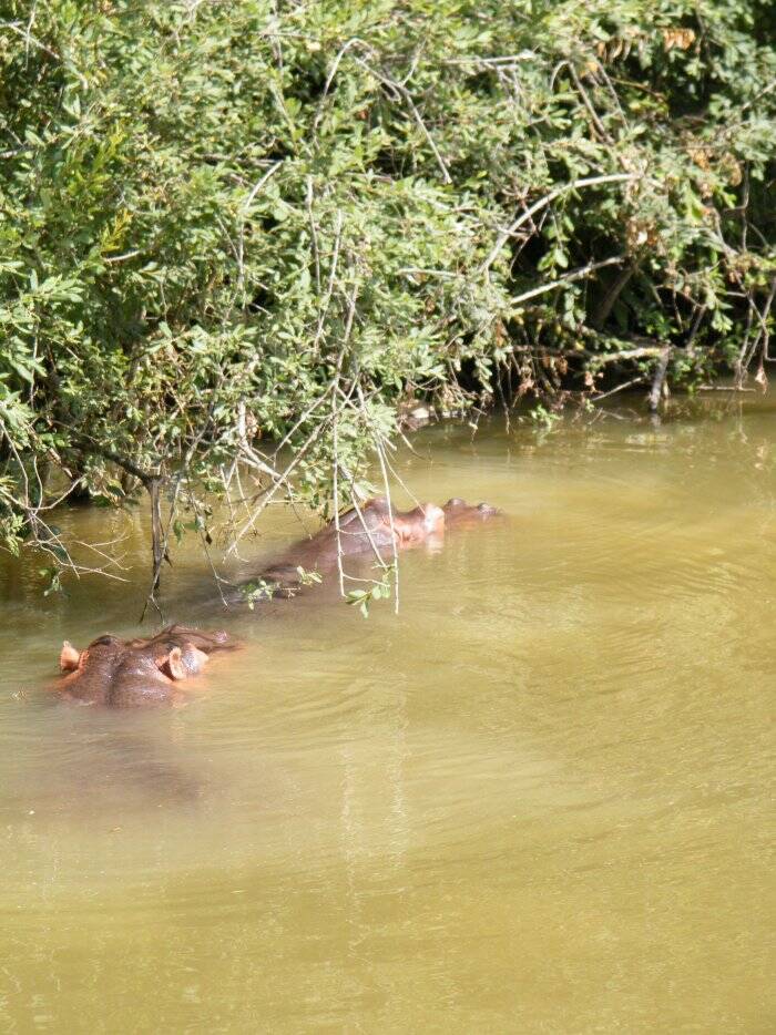Les combats entre hippopotames peuvent durer une heure et demi et sont parfois mortels. Leurs canines inférieures, acérées comme des lames de rasoir, mesurent jusqu'à 50 cm de long et pèsent entre 1kg chez les femelles et 2 kg chez les mâles.