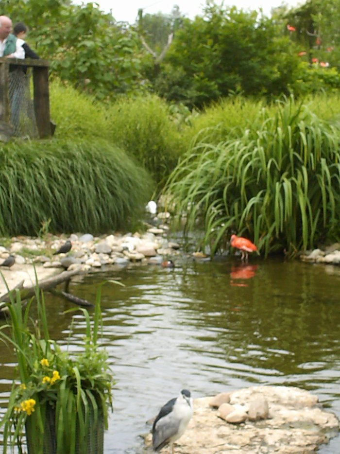 Animée de très nombreux oiseaux multicolores, tels que les Ibis rouges, les Conures soleil, les vanneaux du Chili, ou encore les hérons garde-bœufs, dans un environnement de rivière, bassin et cascade propre à leur épanouissement...