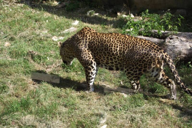 La panthère du Sri Lanka est l'une des neuf sous-espèces de léopard connues, dont l'aire de répartition se situe uniquement au Sri Lanka. La couleur de son pelage est généralement dorée fauve ou roux brun, recouvert de taches noires ouvertes ressemblant à des choux, dont la taille varie avec l'âge de l'animal : les taches sont généralement plus grandes et plus éloignées chez les animaux plus âgés. Le corps du léopard est taillé pour l'agilité, d'où sa facilité pour grimper aux arbres : il a un thorax puissant et des pattes bien développées. Confronté aux autres prédateurs, le léopard peut hisser ses proies dans les arbres à l'abri des charognards. La population semble être en déclin, on dénombre 800 individus, en raison de nombreuses menaces, dont le braconnage pour le commerce et les conflits homme-léopard.