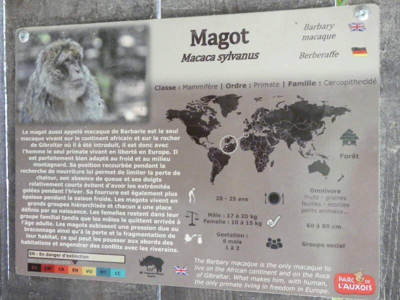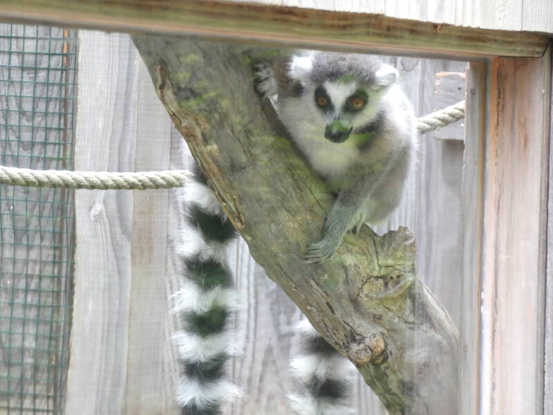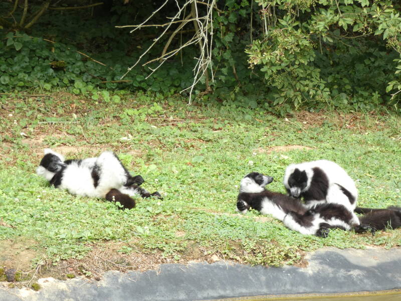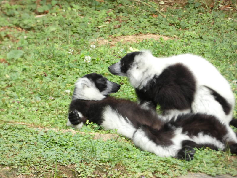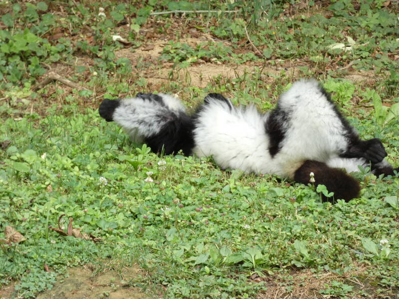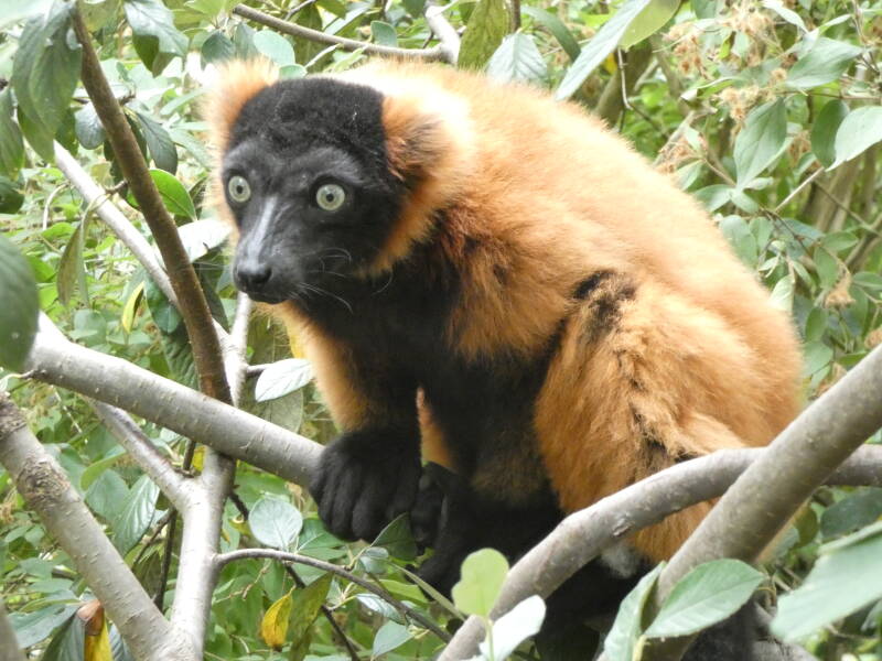 Les mâles et les femelles lémur noirs sont totalement différents puisque les mâles sont entièrement noir avec des touffes de poils noires au niveau des oreilles tandis que les femelles ont un pelage brun-gris avec des touffes blanches aux oreilles. Ils vivent en petits groupes constitués de plusieurs mâles et de plusieurs femelles. Toutes les femelles sont dominantes par rapport aux mâles et peuvent devenir agressives envers eux pour faire respecter leur statut. Entre eux, ils communiquent principalement par des postures du corps et de la queue mais aussi par des odeurs, pour marquer leur territoire ou pour indiquer qu’une femelle est en chaleur et qu’elle cherche un partenaire. Comme les autres lémuriens, le macaco est victime de la déforestation de son île d’origine : Madagascar ainsi que du braconnage.