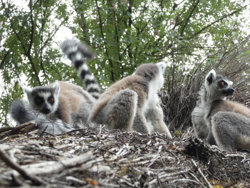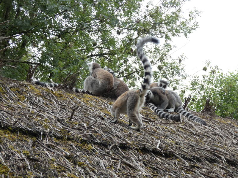 C’est une femelle expérimentée qui domine l’ensemble des individus du groupe. Ce sont d’ailleurs les femelles qui occupent le cœur du groupe; elles y restent toute leur vie tandis que les mâles émigrent vers d’autres bandes à l’âge de la maturité sexuelle. Lors de leur déplacement dans la forêt, ils gardent leur queue annelée dressée bien droite. Cela leur permet de se repérer entre eux et donc de ne pas se perdre.
