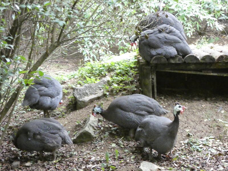 Les pintades vivent en groupes composés de 20 à 25 individus . Tout le groupe se réfugie dans les arbres pour passer la nuit. Terrestres, elles peuvent parcourir plus de 10 km par jour. En cas de danger elles fuient d’abord en courant et elles ne s’envolent qu’en dernier recours. Elles ont un vol assez lourd et préfèrent planer pour parcourir de longues distances dans les airs. Ces oiseaux sont très bruyants; on dit que les pintades caquètent. Omnivores, elles mangent essentiellement.