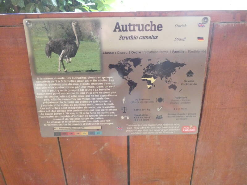 Ce n’est pas parce qu’elle n’ont pas d’ailes mais parce qu’elles n’ont pas de bréchet (os sur lequel s’insèrent les muscles du vol chez tous les oiseaux). Par conséquent, les muscles du vol (pectoraux) sont atrophiés, comme chez tous les autres oiseaux coureurs (ratites). Les autruches sont capables de courir à 80km/h. Les autruches sont les plus grands des oiseaux. Leurs œufs font environ 15 cm de haut et 12 cm de large pour près de 1,5 kg !