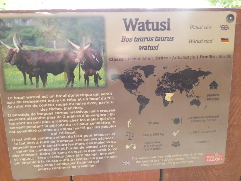La taille de leurs cornes: elles peuvent dépasser plus de 2,5 m de long (bien qu’elles mesurent en général aux alentours de 2m). A noter que les animaux sauvages portant les plus longues cornes sont les moutons du Pamir avec les longueurs pouvant atteindre 1,90m. Les watusis sont des animaux domestiqués depuis très longtemps pour leur lait, leur sang, leur cornes, leur cuir mais aussi leurs excréments utilisés comme combustibles.