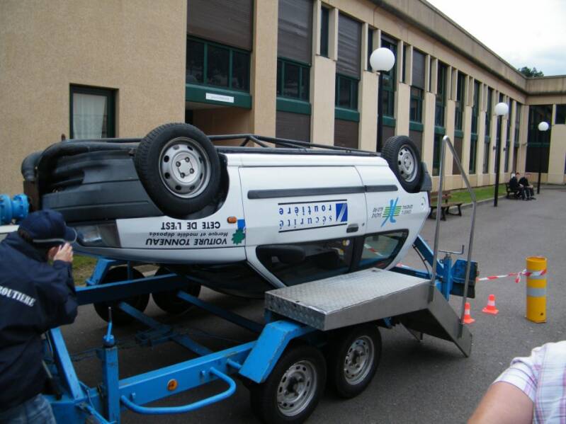Cette animation fait prendre conscience aux occupants que la ceinture de sécurité les maintient parfaitement dans toutes les positions que cela soit sur le côté ou sur le toit.