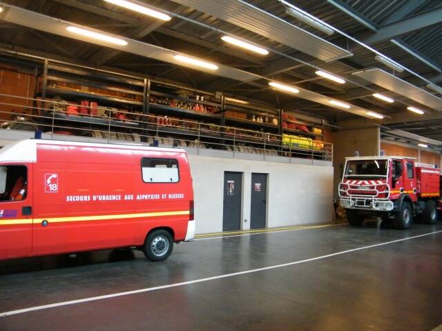L'organisation des locaux répond au principe moderne de « la marche en avant » pour un gain en rapidité d'intervention : le vestiaire est à proximité de la salle de départ qui débouche immédiatement sur la remise des véhicules,