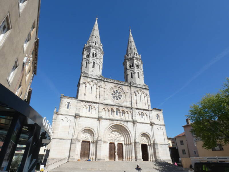 Cette église de style néo-roman, elle est la plus grande de Mâcon. Elle est orientée nord-ouest/sud-est, et mesure 75 mètres de long, sur 30 mètres de large, et atteint 18 mètres à la clef de voûte.