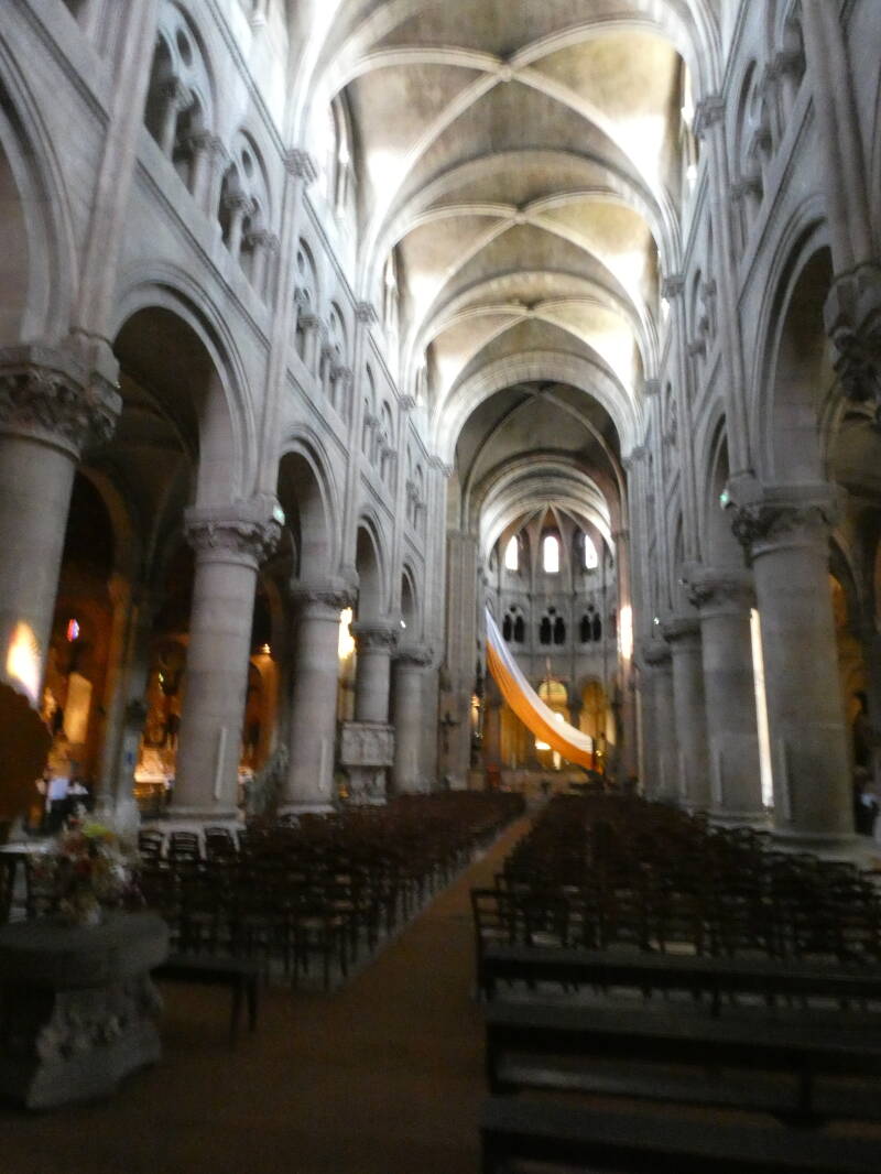 La nef centrale est de style gothique à six travées avec croisées d'ogives. Les collatéraux ouvrent sur des chapelles décorées par des artistes contemporains dont le peintre Jean-Baptiste Beuchot. À gauche se trouve la chaire dont le décor narre la vie de cet apôtre.