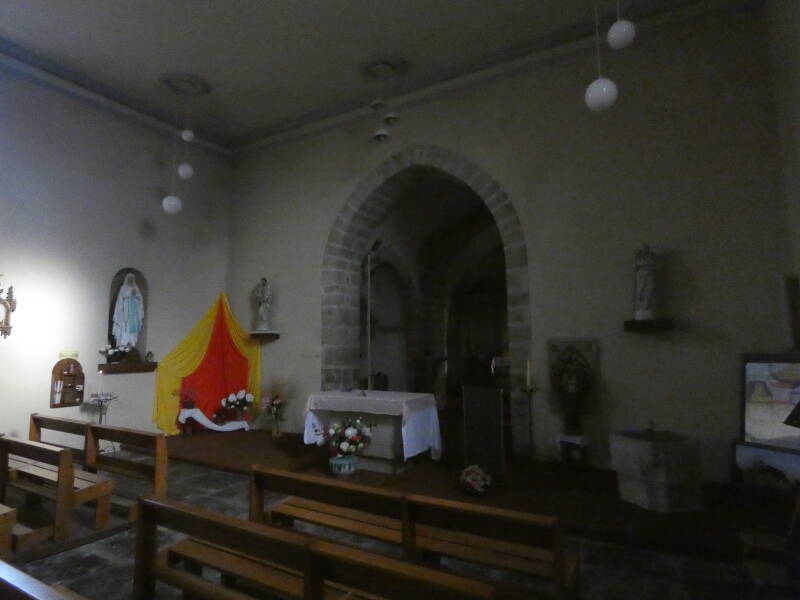 . Retable restauré en 1991 (orné, dans sa niche centrale, d'une statue du XVe – XVIe siècle représentant saint Pierre en pape, assis).