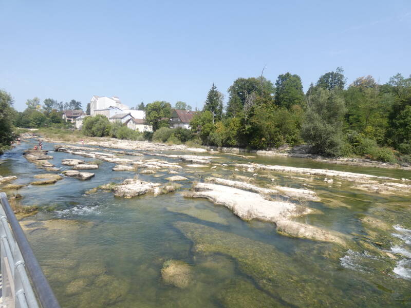 Aujourd'hui, l'Ain chute d'une quinzaine de mètres[1] par une série de cascades, en traversant un site rocheux nommé les marmites de géants. Le calcaire a été creusé au fil du temps, par les forces combinées de l'eau et des galets transportés. Les marmites sont surtout visibles en périodes de basses eaux[