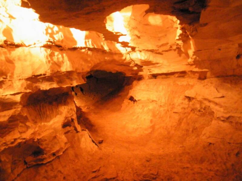 Quasiment point de concrétions ici : la puissance des eaux les a brisé. Dans ce milieu apparemment très hostile, la vie est représentée par des rhinolophes (famille de chauves-souris) dont il reste une cinquantaine d'individus. Les tas imposants de guano montrent que ces populations ont été beaucoup plus nombreuses dans un passé récent.
