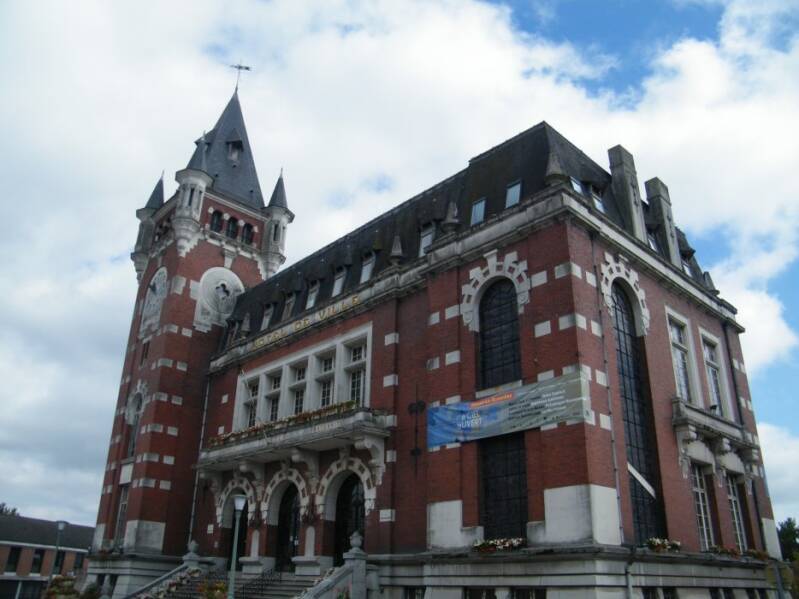 L'hôtel de ville, d'une hauteur de 47 m, édifié dans un style néo-régionaliste par l'architecte bruaysien Hanote en 1927. Dans la cage d'escalier, se trouve un ensemble de vitraux ayant pour sujet la fosse 3 des mines de Bruay, ensemble réalisé par les maîtres verriers Labille et Bertrand, de Lille. Les façades et toitures, la cage de l'escalier d'honneur et ses vitraux, la salle des mariages - salle du conseil municipal et son vestibule avec leurs décors au premier étage font l'objet d'une inscription au titre des monuments historiques depuis le 9 octobre 2009