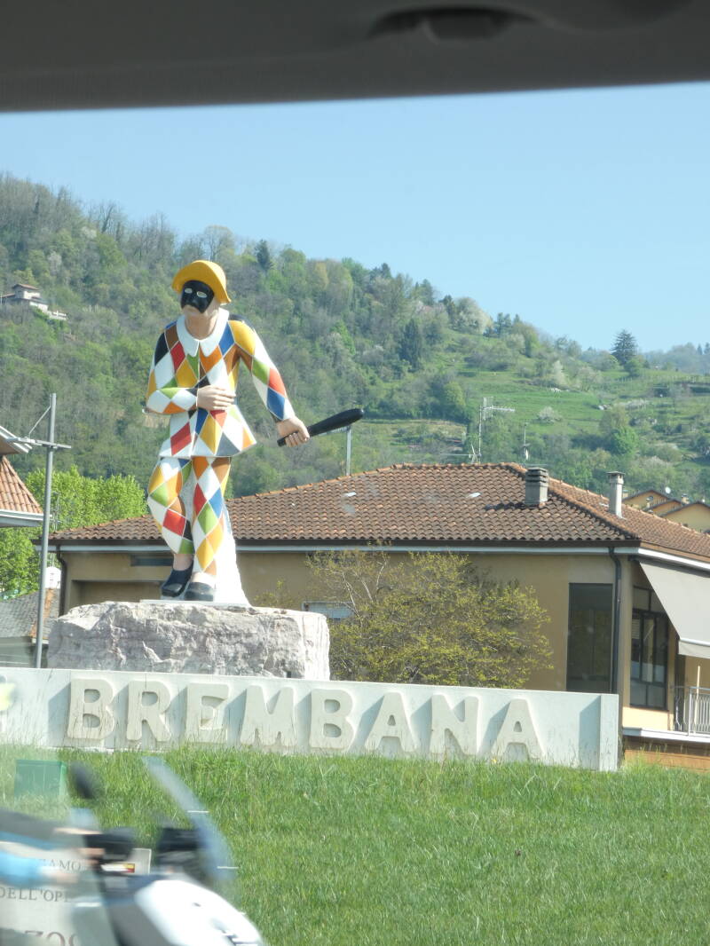 La statue d'arlecchino au début de la vallée de la brembana Bergame