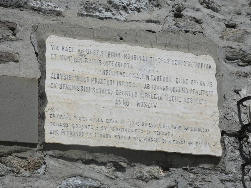 Sur le versant bergamasque figurent toujours les symboles vénitiens datant de l’époque où la route servait à la circulation des marchandises