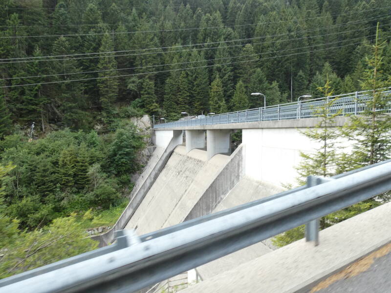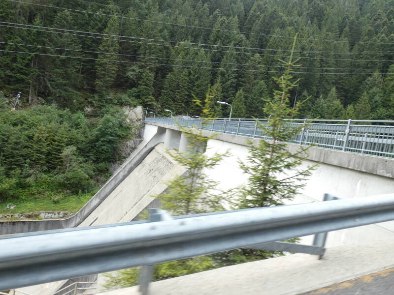 ouvrage hydraulique nommé Alto Mora Dam, situé au Passo San Marco, un col des Alpes lombardes (entre la Val Brembana et la Valtellina) à environ 1 250 m d’altitude