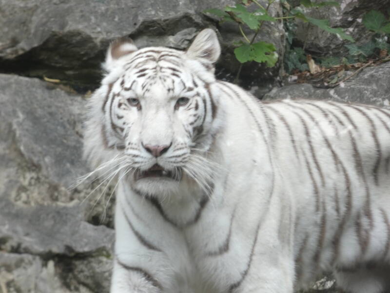 Tigre blanc du Bengale : le parc fut le premier en Europe à en introduire un en 1994, depuis devenu l’un des symboles du site