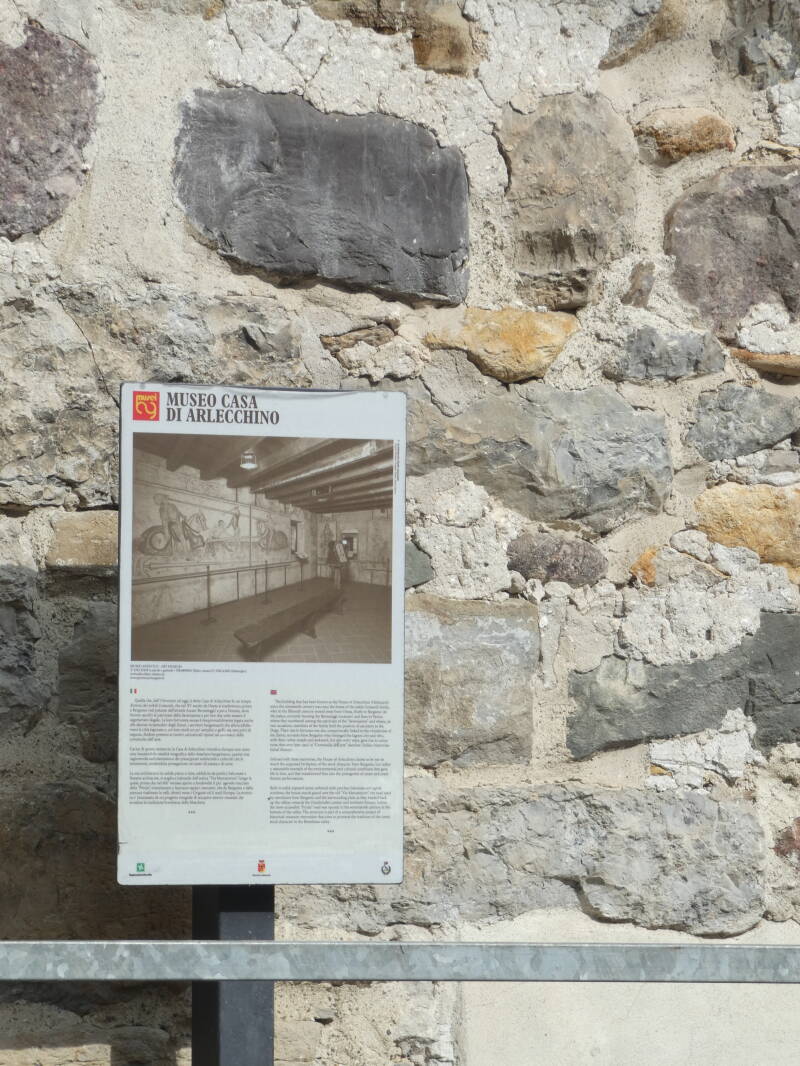 Nous sommes à Oneta, l'ancien village bergamasque, patrie des zanni et d'Arlequin. La "maison d'Arlequin" est en fait un ancien manoir. Conformément au nom qui lui a été donné par la tradition, la Maison d'Arlequin est aujourd'hui un musée qui conserve une sélection de masques des personnages de la commedia dell'arte et abrite depuis 2015 le théâtre de marionnettes permanent de la Compagnia del Riccio.