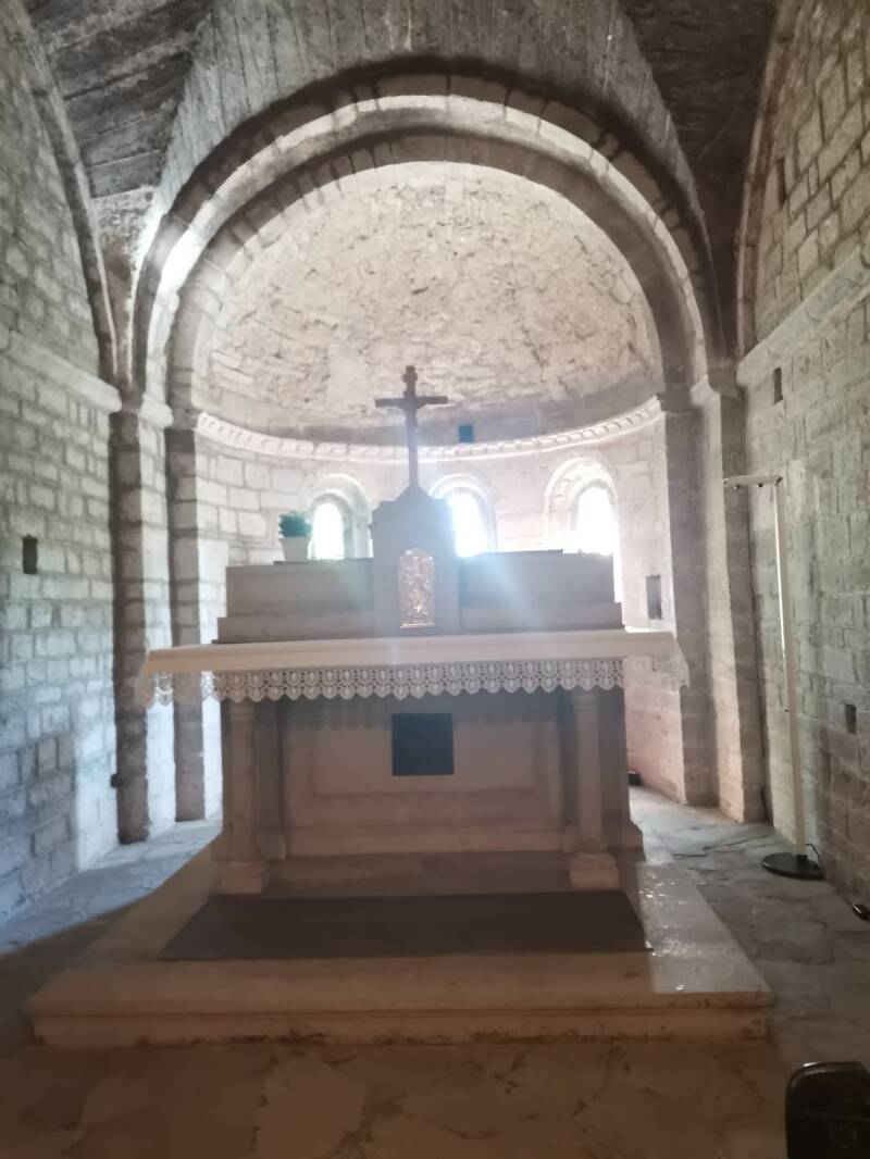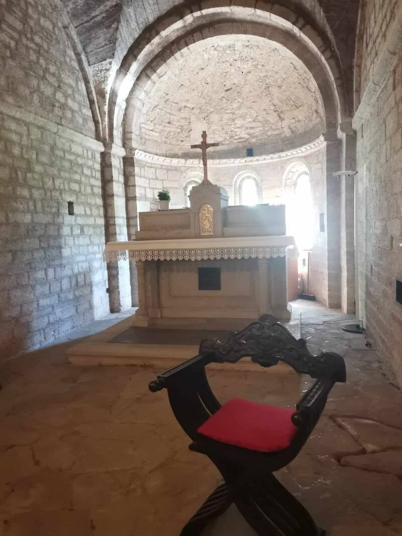L'intérieur, malgré sa simplicité, surprendra par l' harmonie de ses formes, par la paix et l'air mystique qu'on y respire . Hormis les restes de quelques fresques et quelques beaux exemples de chapiteaux (probablement récupérés de bâtiments préexistants), vous n'y trouverez pas d'éléments architecturaux ou décoratifs de grande importance.