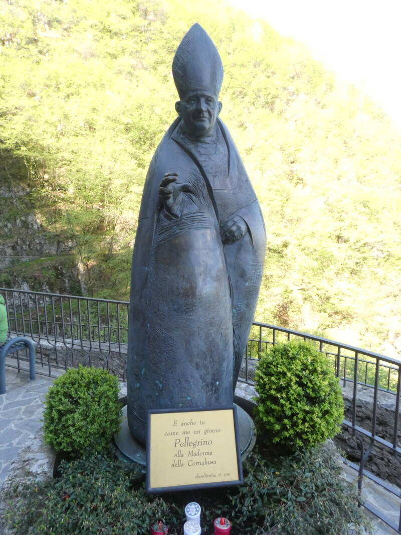 Aujourd'hui, une statue en bronze du sculpteur Gregorio Cividini, représentant le Saint-Pape, veille sur la grotte du Sanctuaire depuis 2000.