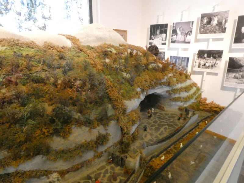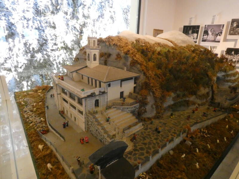 Un système d'accueil ( la Maison du Pèlerin ) et d'attraction des visiteurs s'est également développé autour de la grotte sacrée du Sanctuaire.