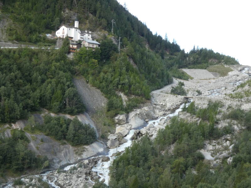 En 1816, le petit sanctuaire subit l’inexorable avancée du glacier de la Brenva : seule la statue de la Vierge est restée intacte, ce qui a été considéré comme un miracle. Le sanctuaire actuel a été reconstruit en 1867 et consacré l’année suivante.